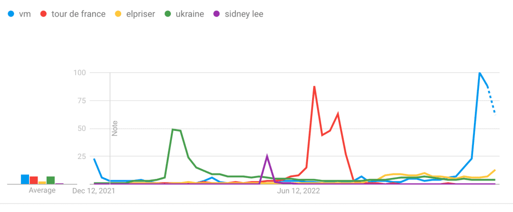 Krigen i Ukraine har dog også haft indflydelse på andre søgninger, da elpriser i starten af efteråret blev ekstra interessant for danskerne. Noget som har været et resultat af stigende priser grundet krigen i Ukraine. Derfor er søgningen "elpriser" også at finde på 3. pladsen blandt de mest trendende søgninger.