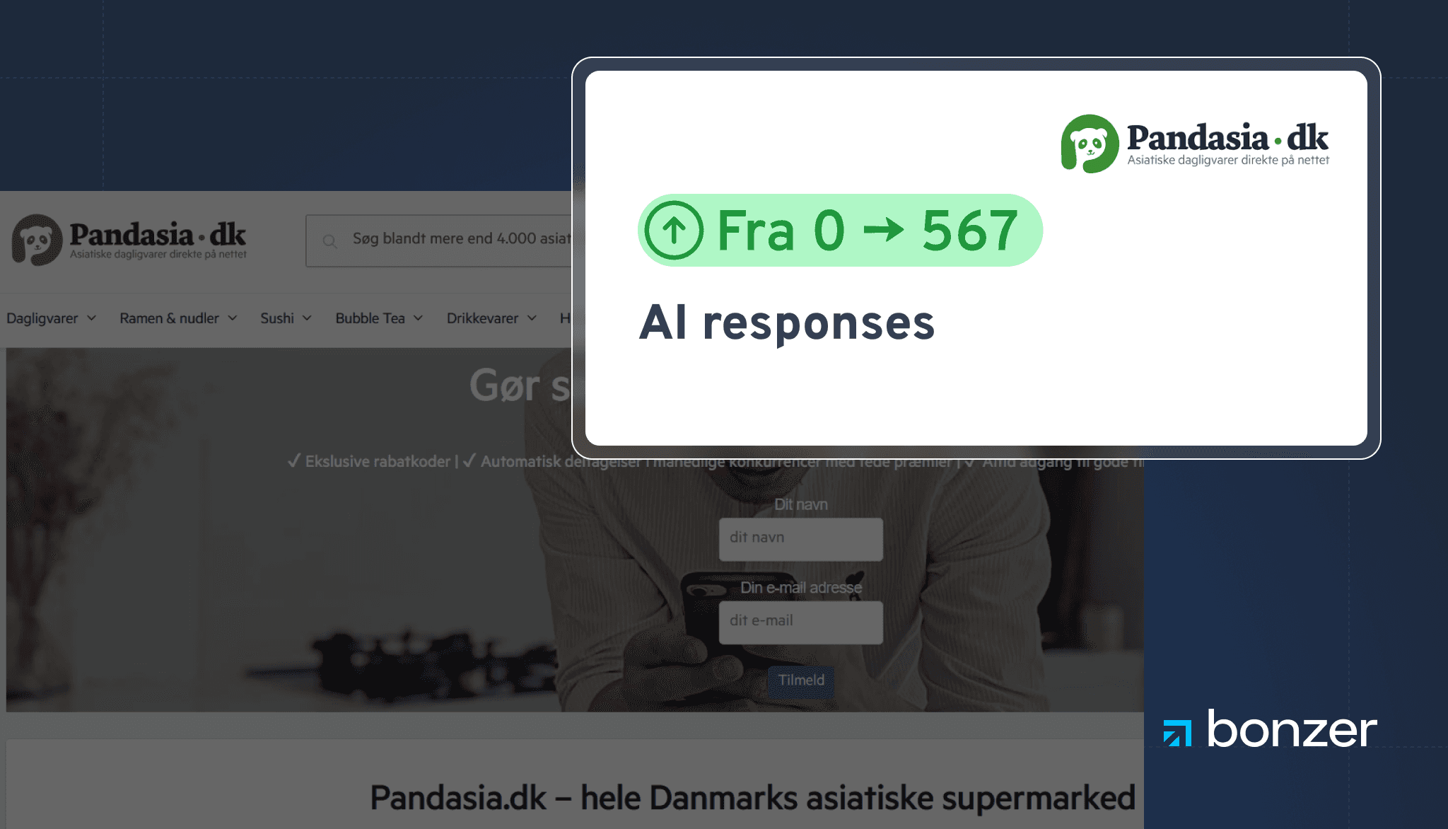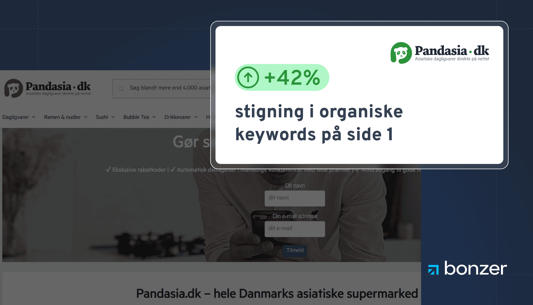 I marts 2025 startede samarbejdet mellem Pandasia – et af Danmarks førende asiatiske online supermarkeder – og Bonzer. Målet var simpelt → at forbedre en række tekniske udfordringer på siden, der udgør grundlaget for god marketing performance, samt at skalere virksomhedens digitale tilstedeværelse med henblik på at indtage førstepositioner på forretningskritiske keywords.