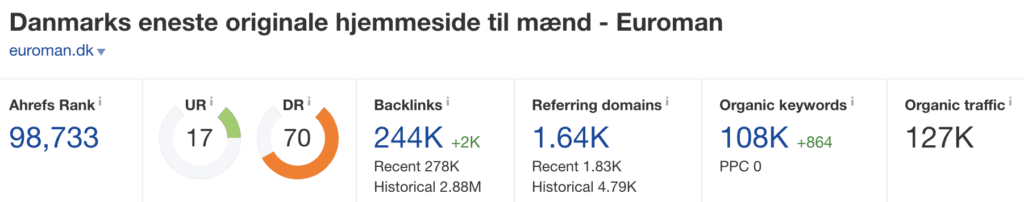 Nedenfor kan du se et eksempel på et domæne, der har fået opbygget en god DR med organisk linkbuilding.