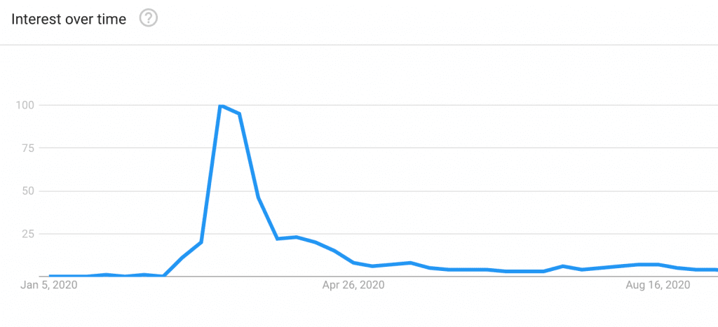 Se eksempelvis udviklingen i søgninger på håndsprit i 2020 - en meget turbulent trend: