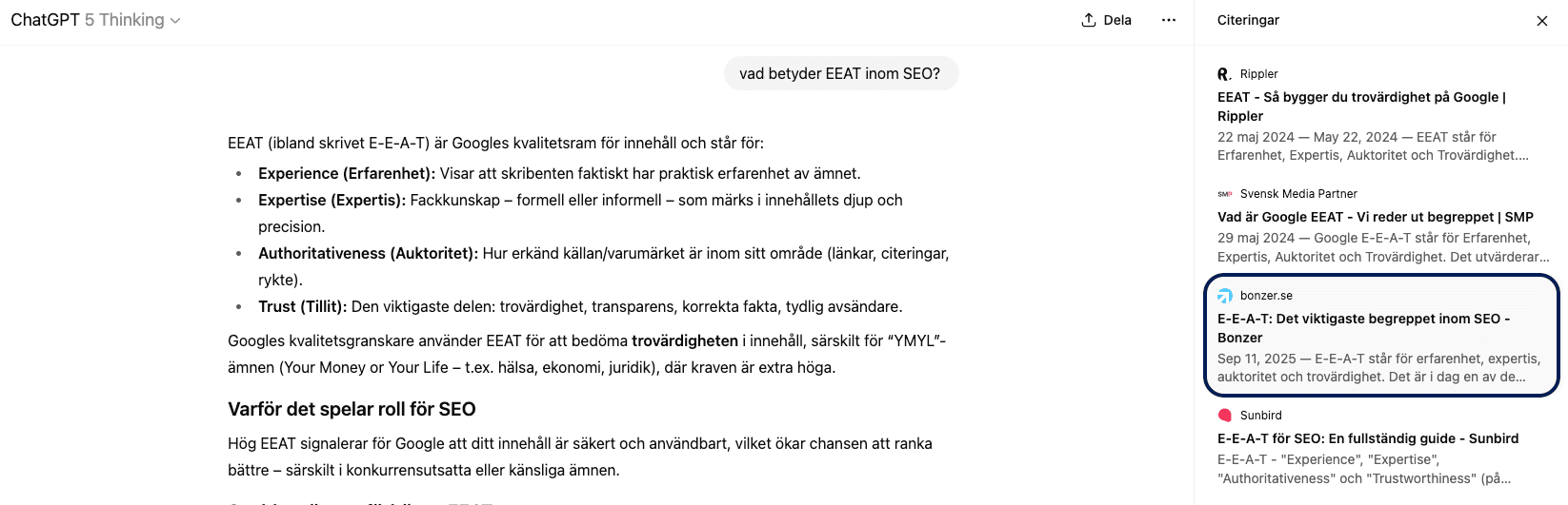 Det här är en ganska stor grej för oss som driver företag. Förut handlade allt om att få klicket. Nu handlar det lika mycket om att bli omnämnd. Att vara den auktoritet som AIn lutar sig mot när den formulerar sitt svar.